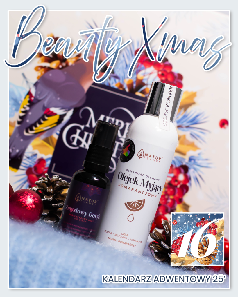 Czas pędzi nieubłaganie! Dziś otwieramy już szesnastą niespodziankę z naszego KALENDARZA ADWENTOWEGO BEAUTY XMAS! Tym razem do Waszych rąk trafiły aż dwa fantastyczne produkty, które z pewnością wprowadzą do Waszej pielęgnacji odrobinę świątecznego ciepła i relaksu – OLEJEK MYJĄCY POMARAŃCZOWY oraz OLEJ DO MASAŻU ZMYSŁOWY DOTYK od marki NATUR PLANET! Ten wyjątkowy duet pełen naturalnych składników doskonale łączy codzienną rutynę z aromaterapeutycznymi doznaniami. Koniecznie musicie to sprawdzić!