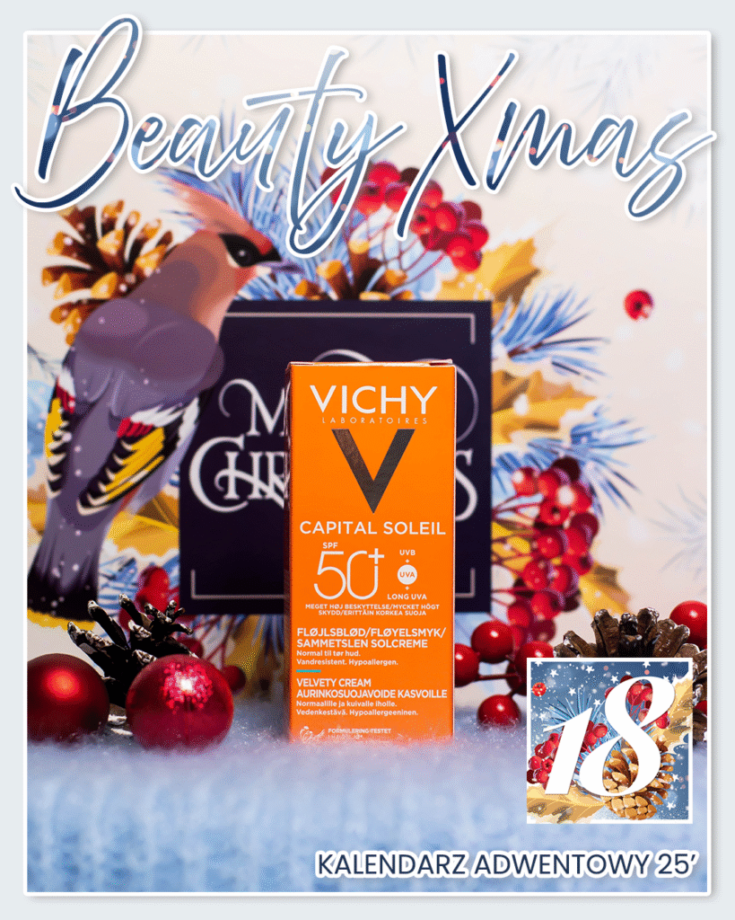Grudniowe przygotowania do świąt nabierają tempa – listy zakupów rosną, prezenty czekają na spakowanie, a każdy dzień przynosi nowe obowiązki. W tym przedświątecznym szaleństwie warto jednak na chwilę zwolnić i zadbać także o siebie. Dlatego dziś, w osiemnastym już dniu naszego wspólnego odliczania do Świąt z KALENDARZEM BEAUTY XMAS, czeka na Was produkt, który zatroszczy się zarówno o komfort, ochronę, jak i aksamitne nawilżenie cery – poznajcie VICHY CAPITAL SOLEIL SPF50+!